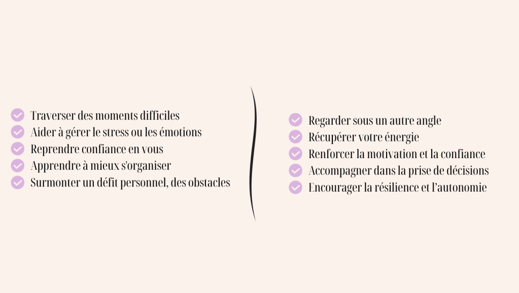 Un coaching de soutien est une approche personnalisée, une ressource précieuse pour celles qui cherchent une solution pour avancer sereinement et rapidement, en s’exprimant en toute liberté, sans jugement.